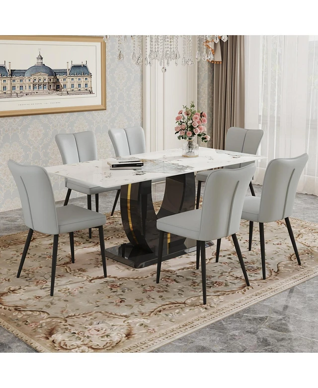 Pandora Dining Set: 71" Rect. Table & 6 Pu Chairs