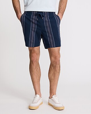 6" Embroidered Geo Striped Drawstring Elastic Waist Shorts