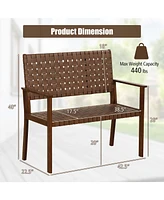 Patio Loveseat All Weather Bench with Solid Rubber Wood Frame&Hand Woven Pu Leather