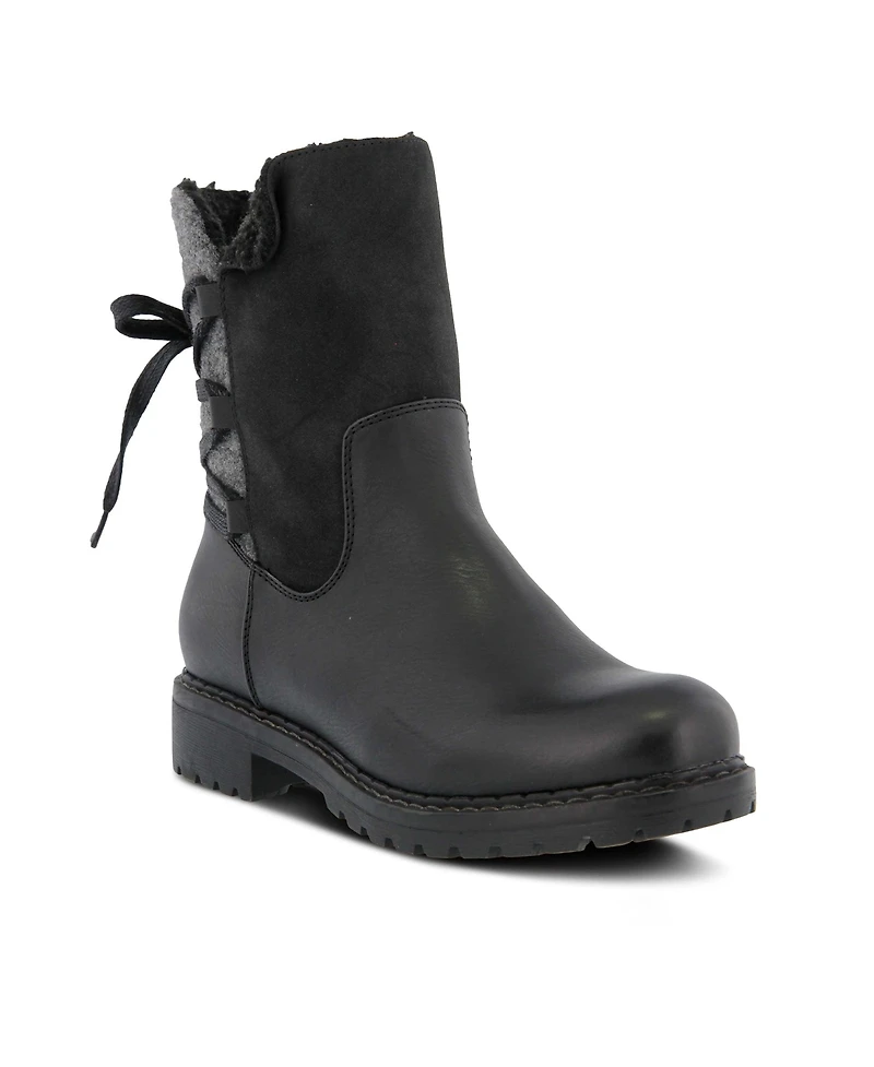 The Dawna bootie from Patrizia blends stylish functionality with cozy charm. Crafted with a soft faux wool back shaft and high-quality faux leather upper, these booties are finished with adjustable back laces and tonal stitching for a modern touch. The full-length side zipper ensures easy on-and-off wear, while a chunky sculpted heel adds stable lift. Inside, plush faux fur lining and a cushioned insole deliver all-day warmth and comfort. Whether dressing up denim or layering with leggings, Dawna brings effortless cold-weather style.