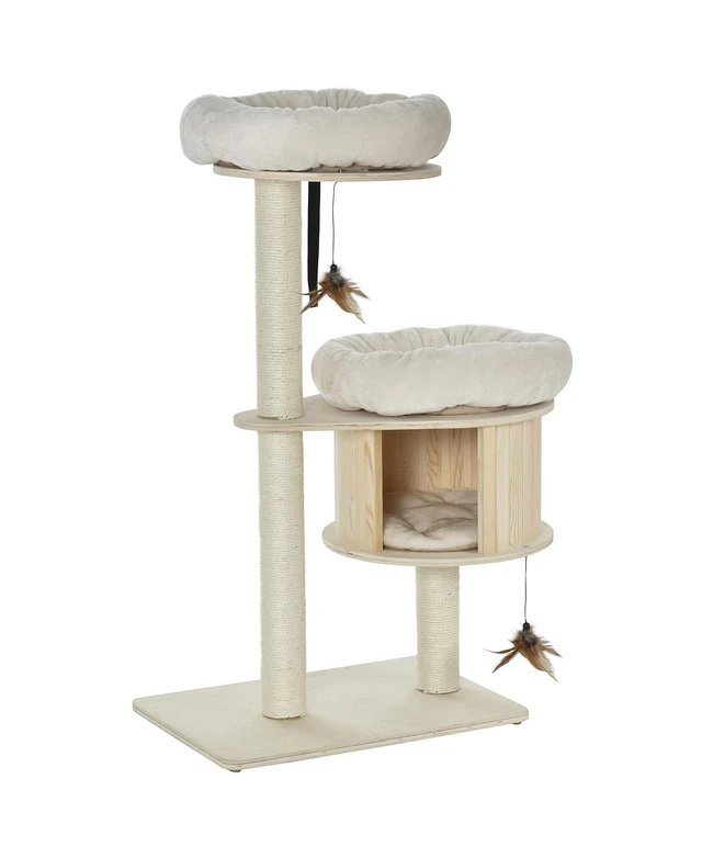 Bingopaw Solid Wood Cat Tree Tower for Indoor Cats With Soft Cushions
