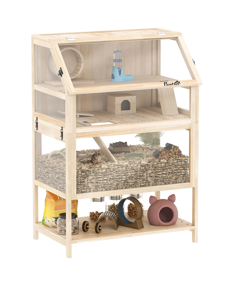 PawHut Wooden 3 Tier Hamster Cage with Storage Shelf for Dwarf, Gerbil
