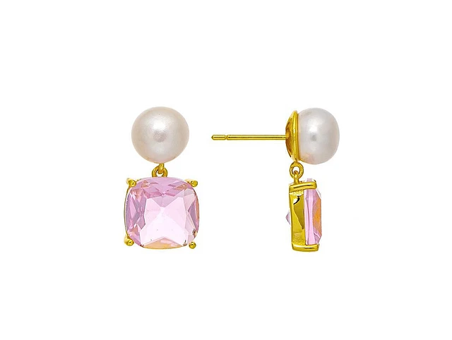 2028 Gold-Tone Crystal Ivory and Pink Porcelain Rose Simulated Pearl Drop Earrings