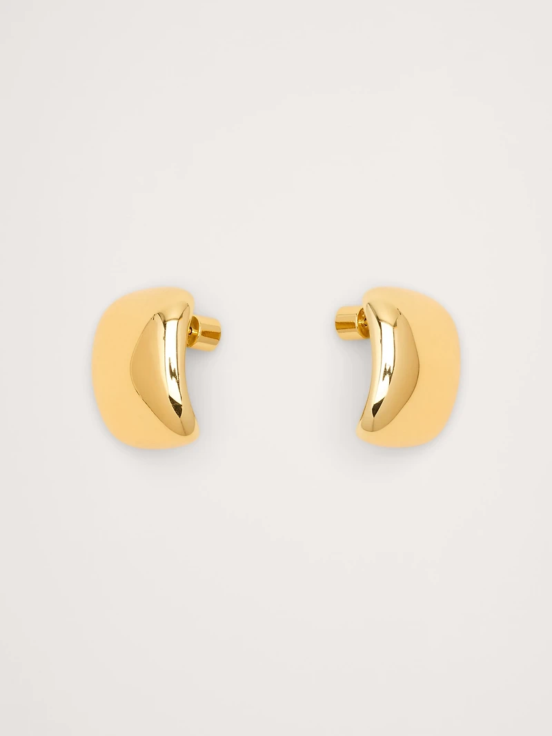 Sleek and sculptural, these post-back earrings have a gently curved shape reminiscent of squared pebbles. Crafted in your choice of 14k-gold or rhodium plated brass. Martha Calvo: Miami-based jewelry brand known for bold chains, freshwater pearls, and playful, high-impact pieces made by hand. Designed to be mixed, matched, and enjoyed. 14k-gold or rhodium plated brass. Post backs. Length: 1" Width: 0. 5"