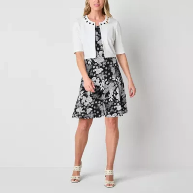 Perceptions Womens Petite Floral Jacket Dress