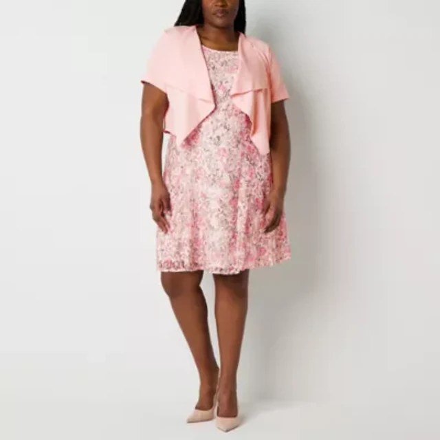 Perceptions Womens Floral Lace Jacket Dress Plus