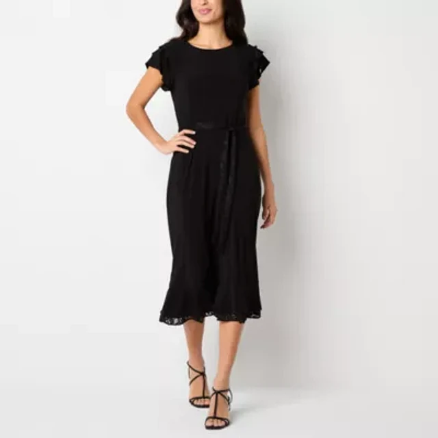 Perceptions Womens Short Sleeve Midi Fit + Flare Dress