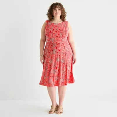 Perceptions Womens Sleeveless Floral Midi Plus Fit + Flare Dress