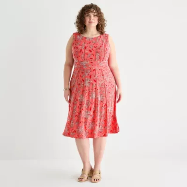 St. John's Bay Womens Sleeveless Floral Midi Swing Dresses