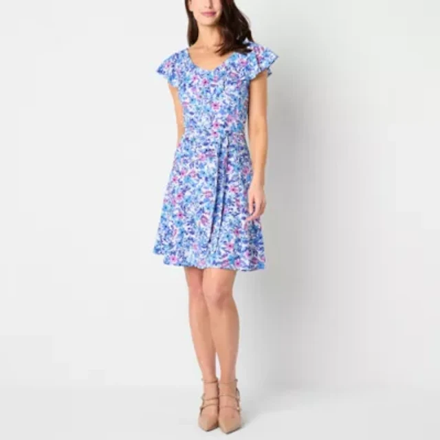 Perceptions Womens Sleeveless Floral Petite Fit + Flare Dress
