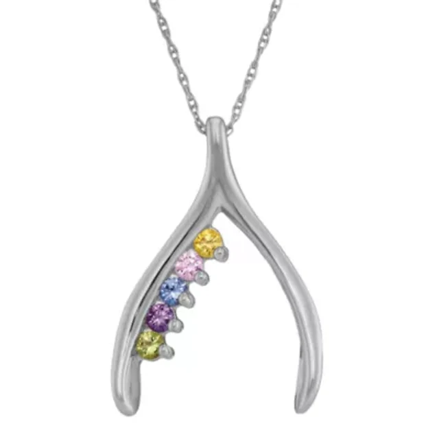 Personalized 10K White Gold Birthstone Wishbone Pendant Necklace