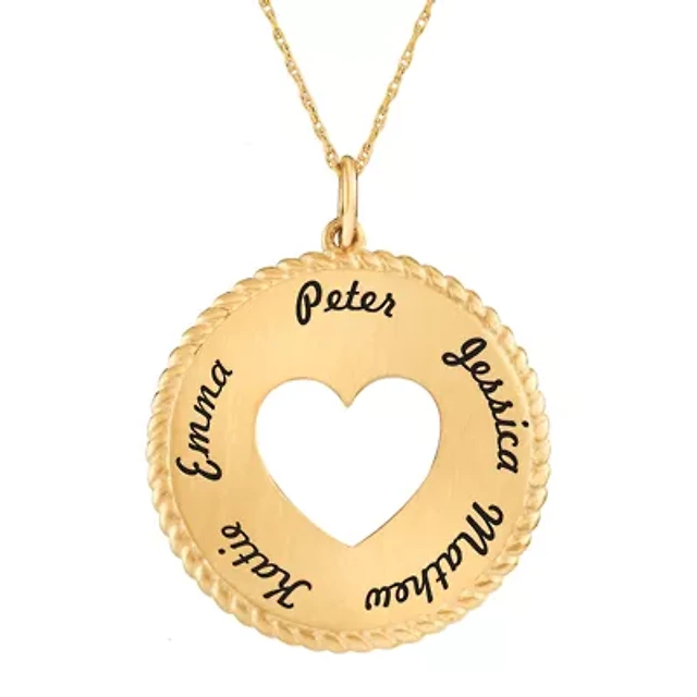 Personalized 10K Yellow Gold Round Disc Heart Pendant Necklace