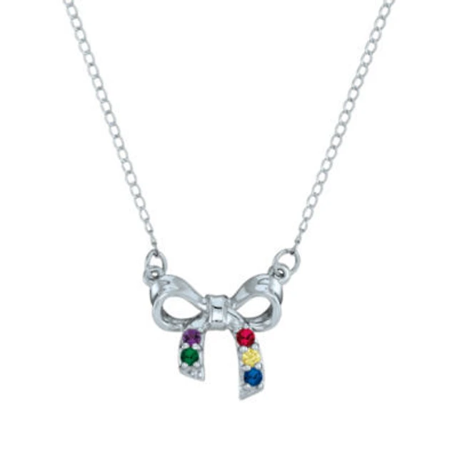 Personalized Simulated Birthstone Bow Pendant Necklace