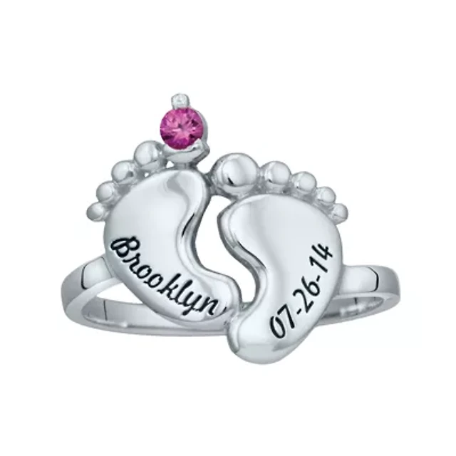Personalized Simulated Birthstone Engraved Baby Feet Ring
