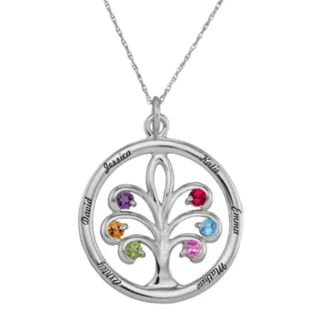 Personalized Sterling Silver Family Tree Birthstone Pendant Necklace