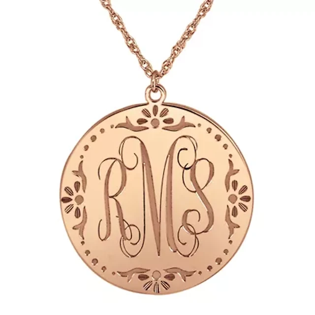 Personalized Sterling Silver Vine Monogram Initials Coin Pendant Necklace