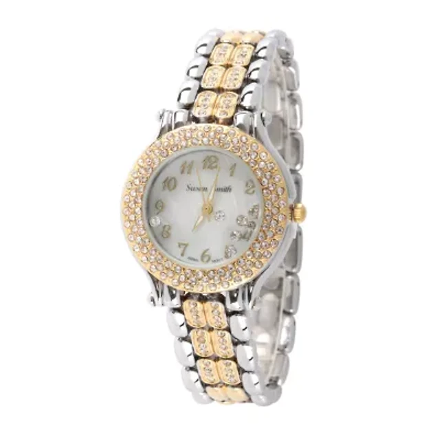 Personalized Womens Two Tone Crystal Accent Bracelet Watch