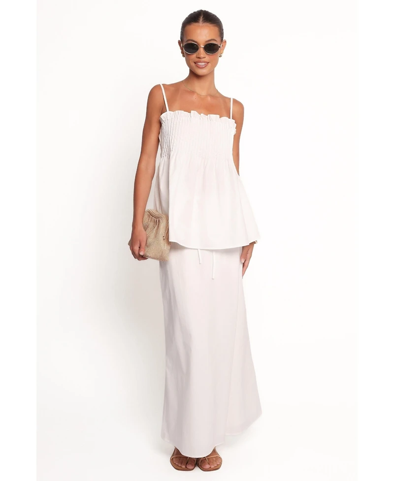 The Carson Pleated Top is the statement piece your wardrobe needs. Featuring a pleated bodice, a square neckline, and delicate spaghetti straps, it's designed for comfort. The frill hem adds the right amount of detail, making it perfect to pair with jeans or a flowy skirt for an on-trend look.