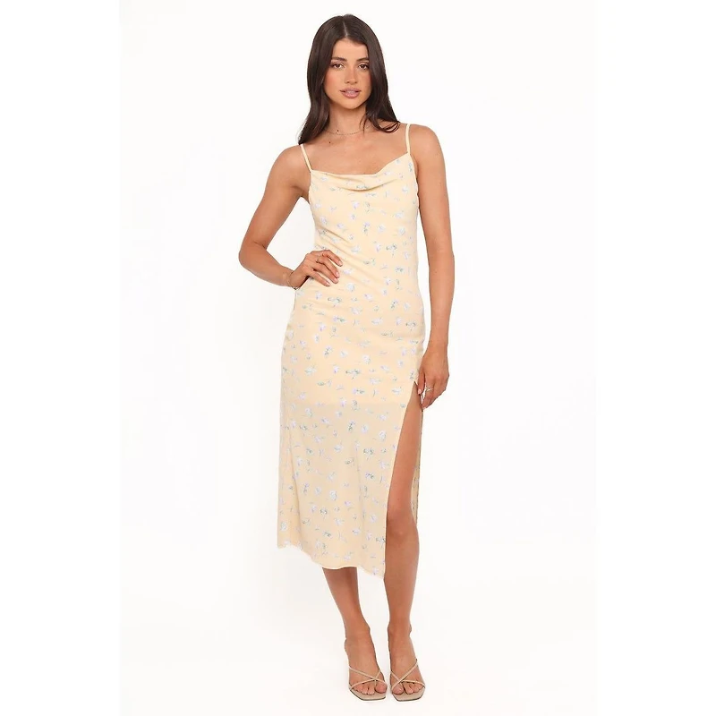 Slip into effortless elegance with the Yelena Dress, your new wardrobe essential for any occasion. Designed with a flattering midi length and a sophisticated cowl neckline, it beautifully combines modern trends and timeless charm.
