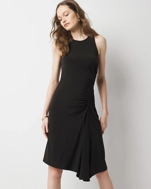 Petite Off The Shoulder Ruched Mesh Sheath Dress