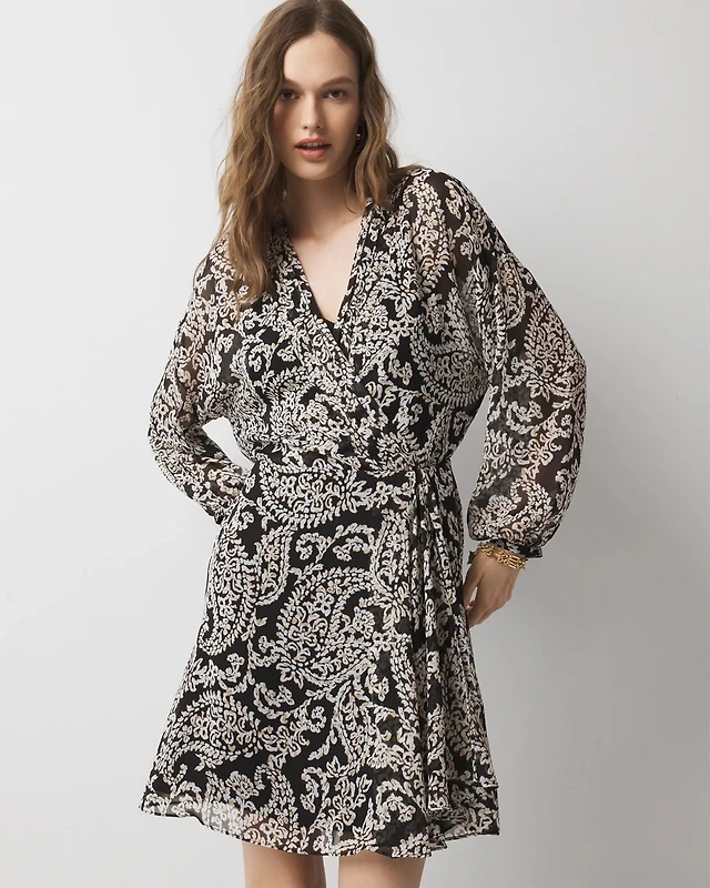 Long-Sleeve Surplice Mini Dress