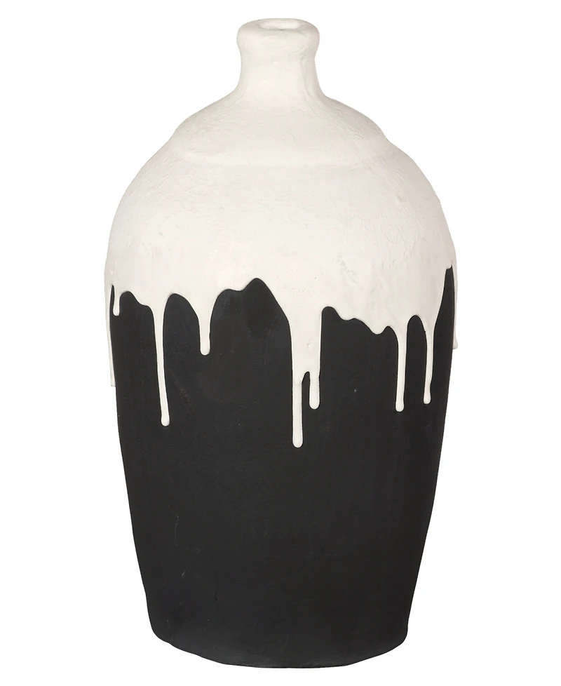 Art meets in the Porcelain Drip Vase Collection. Matte black and crisp white surfaces are accented with a flowing drip detail that feels both expressive and refined. Group multiple shapes together for a bold, modern moment.