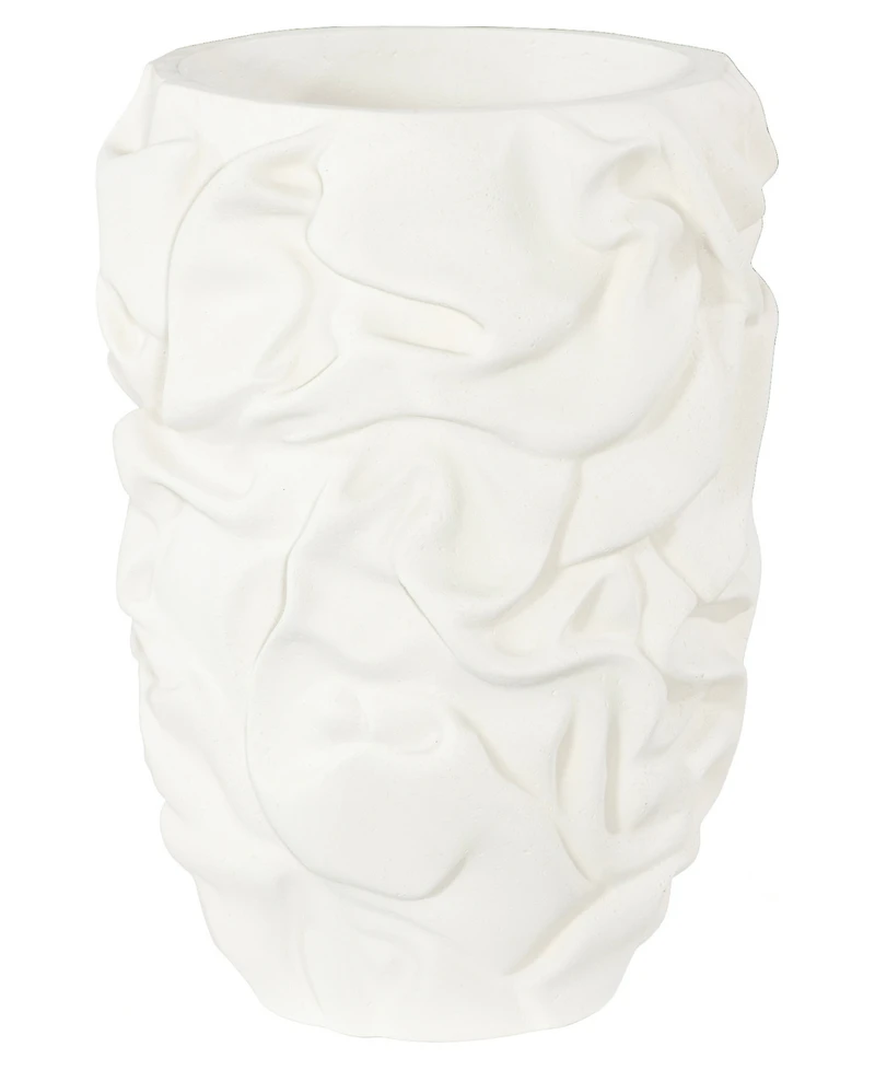The Drape Planter mimics flowing fabric in sculptural form. Finished in white stone, its soft folds and composite construction create a calming planter that feels both tactile and artistic.