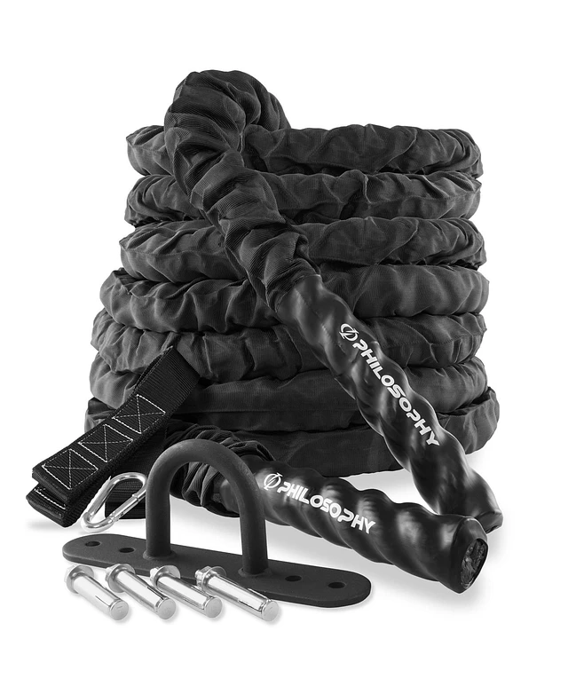 Philosophy Gym 50 Foot Exercise Battle Rope 2 Inch Diameter with Cover and Anchor Kit