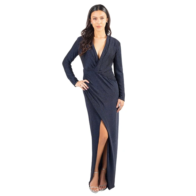 Connected Women's Drape-Neck Side-Pleat Shimmer Dress