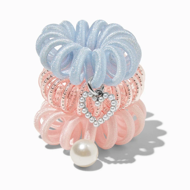 Pink & Blue Shimmer Charm Spiral Hair Ties - 3 Pack