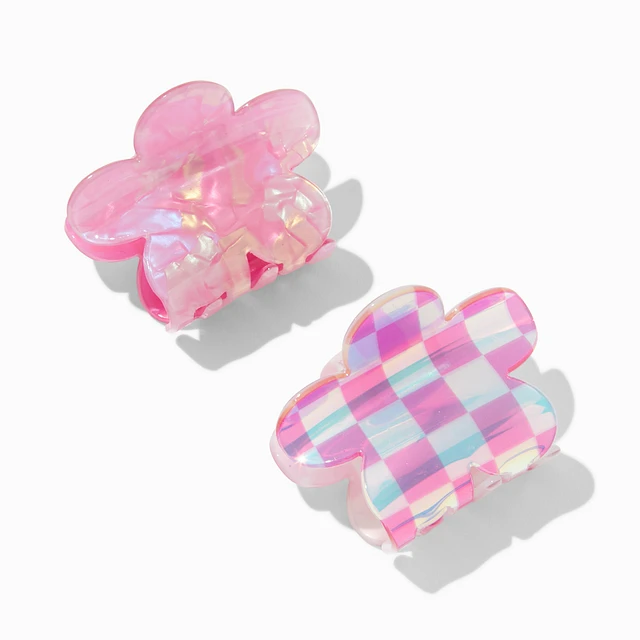 Pink Checkered Daisy Hair Claws - 2 Pack