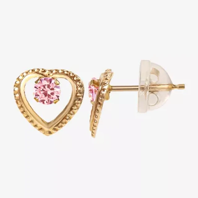 Pink Cubic Zirconia 10K Gold 6mm Heart Stud Earrings