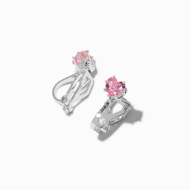 Pink Heart Cubic Zirconia Clip-On Stud Earrings