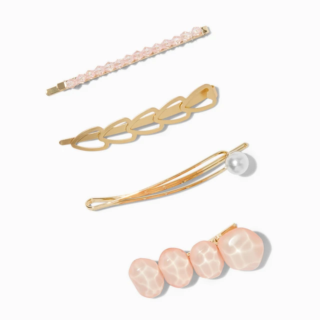 Rose Gold Beaded Tortoiseshell Hair Pins - Pink, 6 Pack