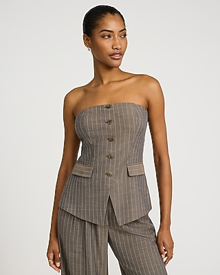 Pinstripe Strapless Button Down Vest Top in San Juan, PR