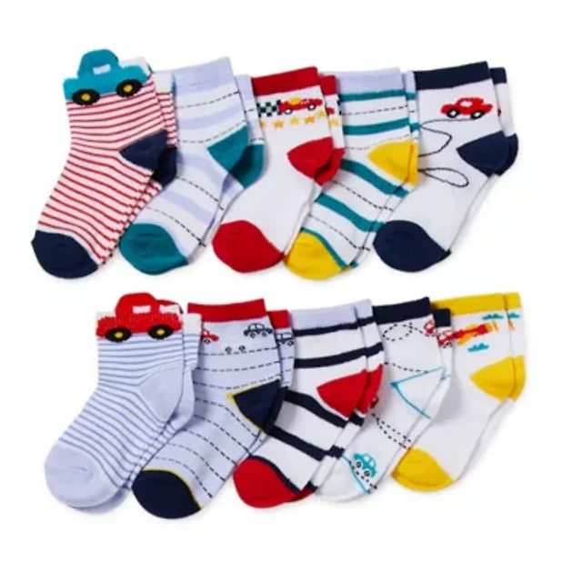 Piper & Jax Baby Boys 10 Pair Crew Socks