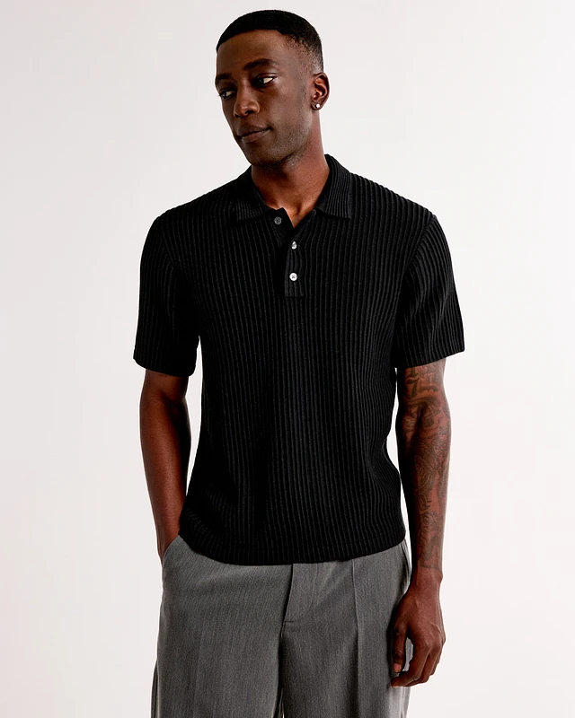 Merino Wool-Blend Stitch 3-Button Sweater Polo