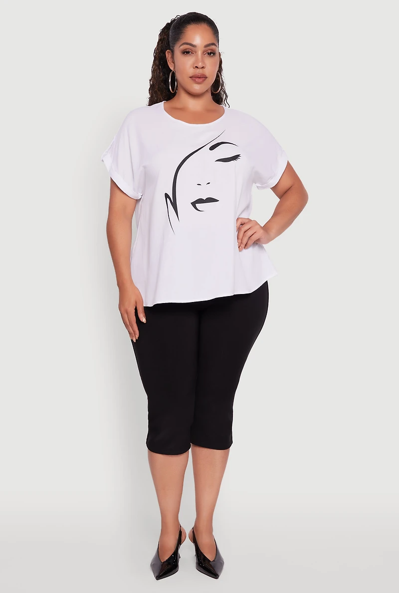 Step up your casual style game with the Plus Size Abstract Face Graphic Tabbed Sleeve Tee. This classic fit tee brings a fresh artistic vibe to your everyday look with its bold abstract face print. Designed with comfy short tabbed sleeves and a timeless crew neck, it’s perfect for those who want to stay effortlessly cool and confident all day long. Whether you’re out with friends or chilling at home, this tee has your back and your style covered.