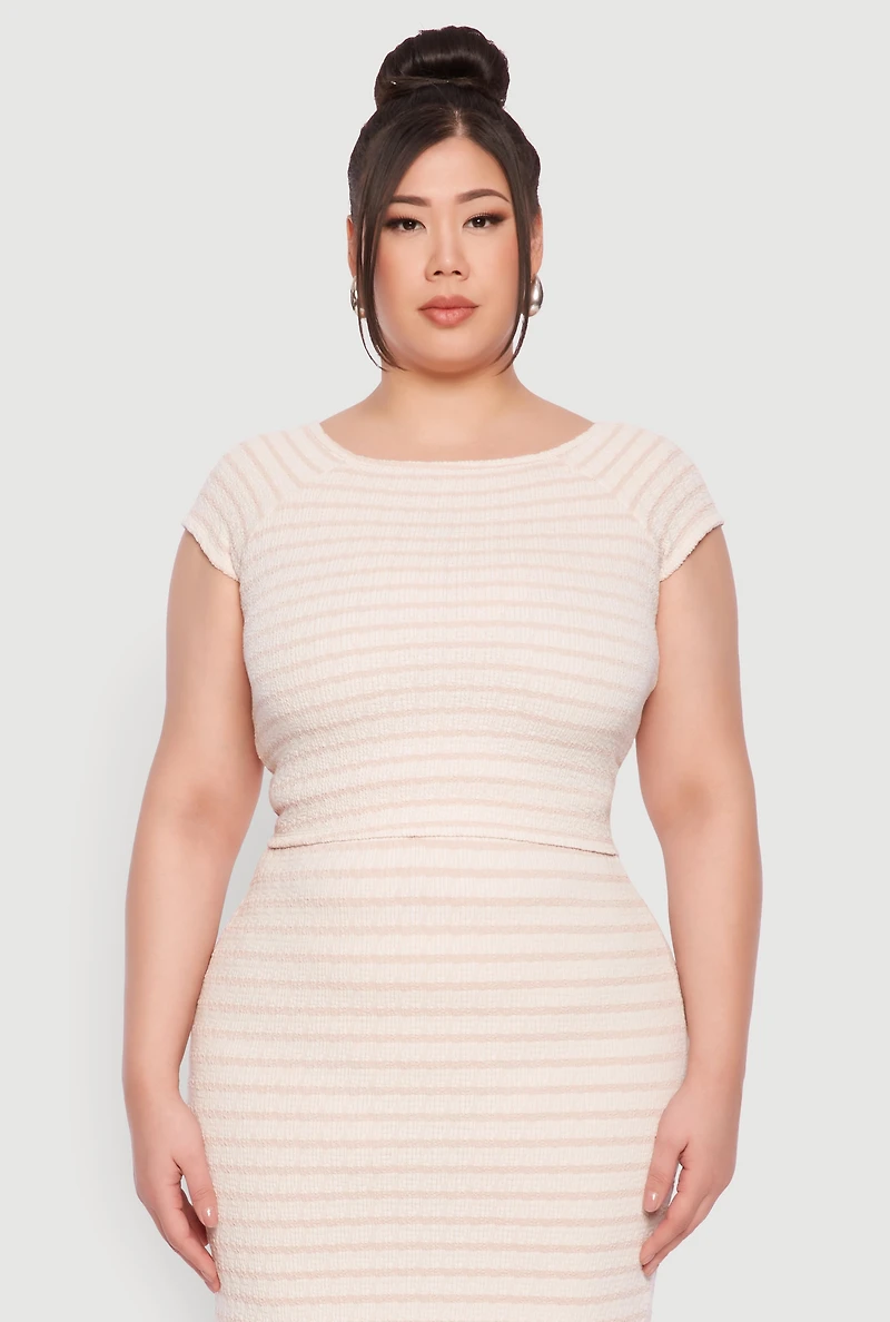 Plus Almost Famous Striped Textured Blouse