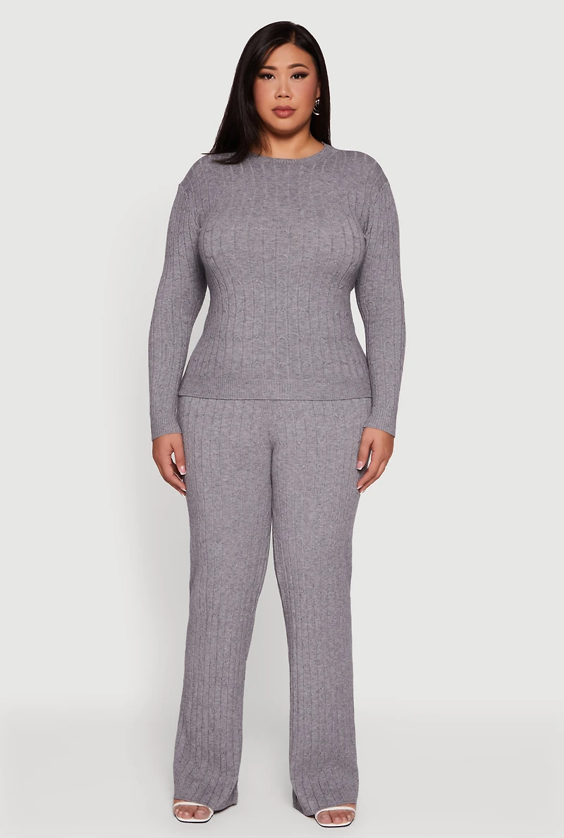 Step into cozy comfort with these Plus Size Cable Knit Drawstring Detail Pants. Designed for a classic fit and high-waisted silhouette, they blend laid-back style with a flattering shape that moves with you. The soft brushed and cable knit fabric gives you warmth and texture without sacrificing breathability. Whether you're lounging at home or running errands, these full-length straight leg pants offer effortless style and all-day ease. Made from soft brushed and cable knit fabric for cozy comfort High-waisted design enhances your natural shape Classic fit with straight leg cut for a timeless look Pull-on style with faux drawstring detail for easy wear Perfect for casual days, lounging, or everyday errands Model Pictured Wearing Size 1X Height 5 ft 10 in, Bust 38 in, Waist 33 in, Hips 47 in Fits True To Size Measurements Inseam: 32 in Content and Care Material: 50% Rayon, 26% Nylon, 24% Polyester Care Instructions: Hand Wash Country Of Origin: China Rainbow Item Number 3393056720055 BLACK - 3393056720055001