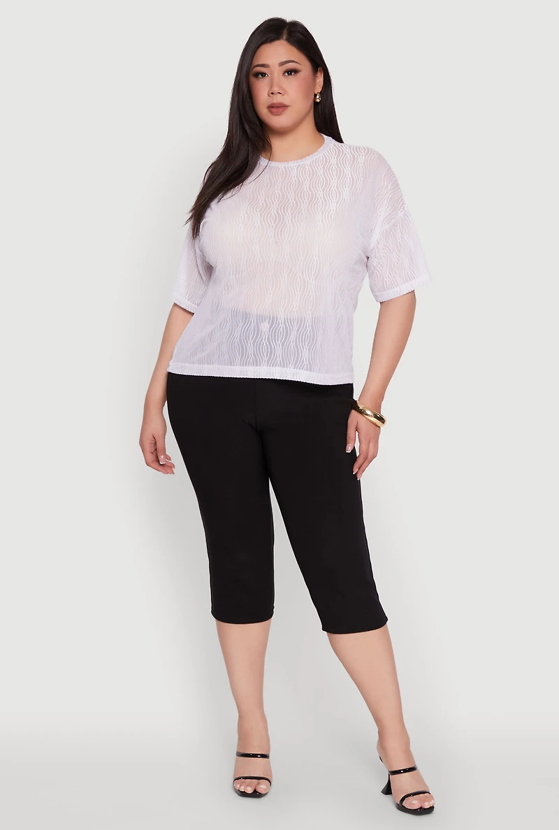 Plus Chic Sheer Mesh Blouse with Crew Neck and Short Sleeves in San Juan, PR