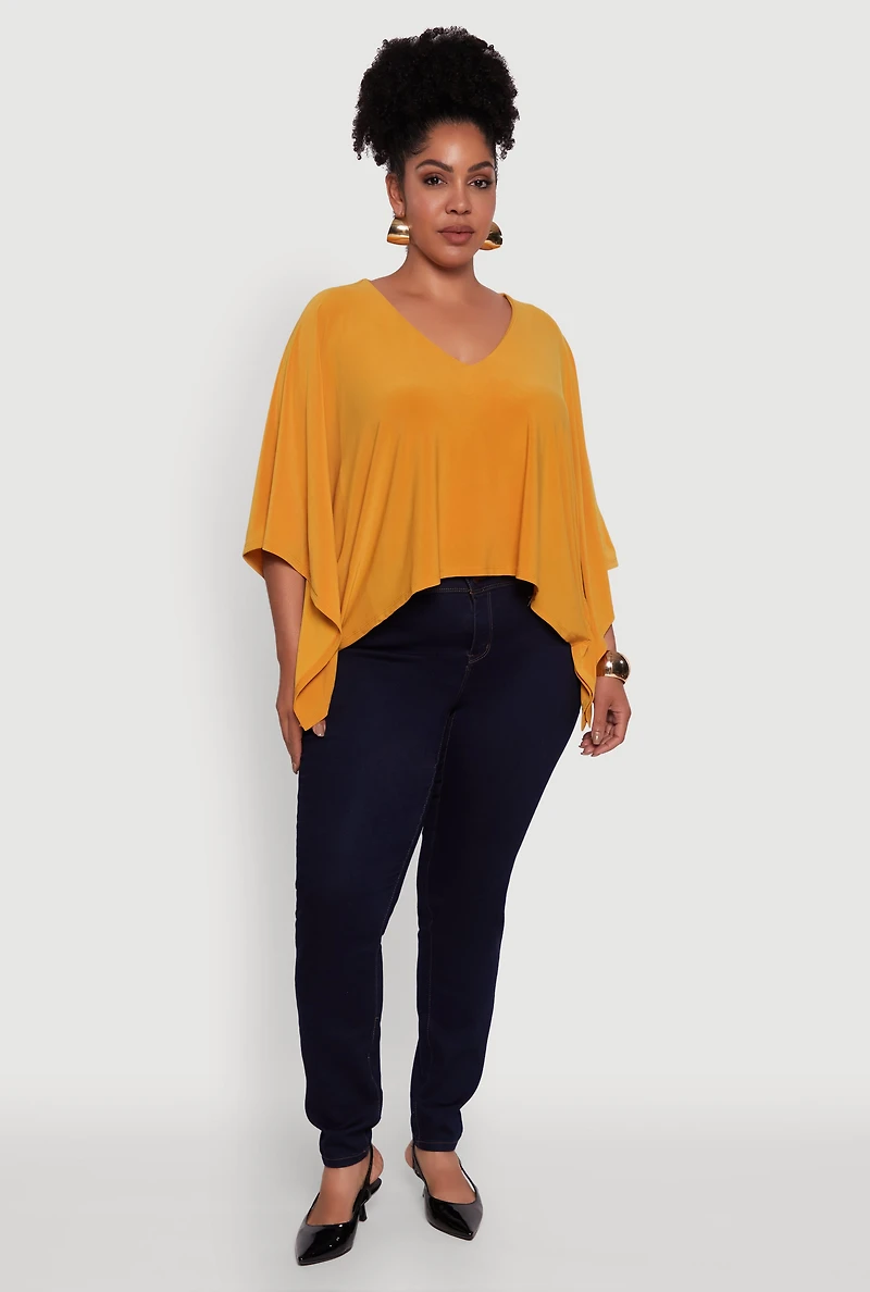 Step up your style game with this Plus Size Crepe Knit V Neck Crop Blouse, designed to bring effortless chic to your wardrobe. The classic fit flatters every curve while the 3/4 dolman sleeves add a trendy twist that keeps things fun and flirty. Perfect for dressing up or down, this blouse is your go-to for those days when you want to look polished without trying too hard. The soft crepe knit fabric feels as good as it looks, making comfort a top priority. Ready to turn heads? This crop blouse is here to make it happen. Classic fit offers a timeless silhouette that complements your shape V-neckline enhances your neckline with a subtle, flattering touch 3/4 dolman sleeves bring a modern, breezy vibe Soft and stretchy crepe knit fabric ensures all-day comfort Solid color makes it easy to mix and match with your favorite pieces Crop length adds a fresh, youthful edge perfect for layering or showing off high-waisted styles Dressy style ideal for work, brunch, or nights out Model Pictured Wearing Size 1X Fits True To Size Content and Care Material: SELF: 95% Polyester, 5% Spandex Care Instructions: Hand Wash Country Of Origin: Vietnam Rainbow Item Number 1801054212793 MUSTARD - 1801054212793071