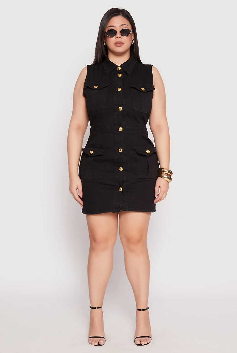 Plus Daisy Sleeveless Denim Utility Mini Dress in San Juan, PR