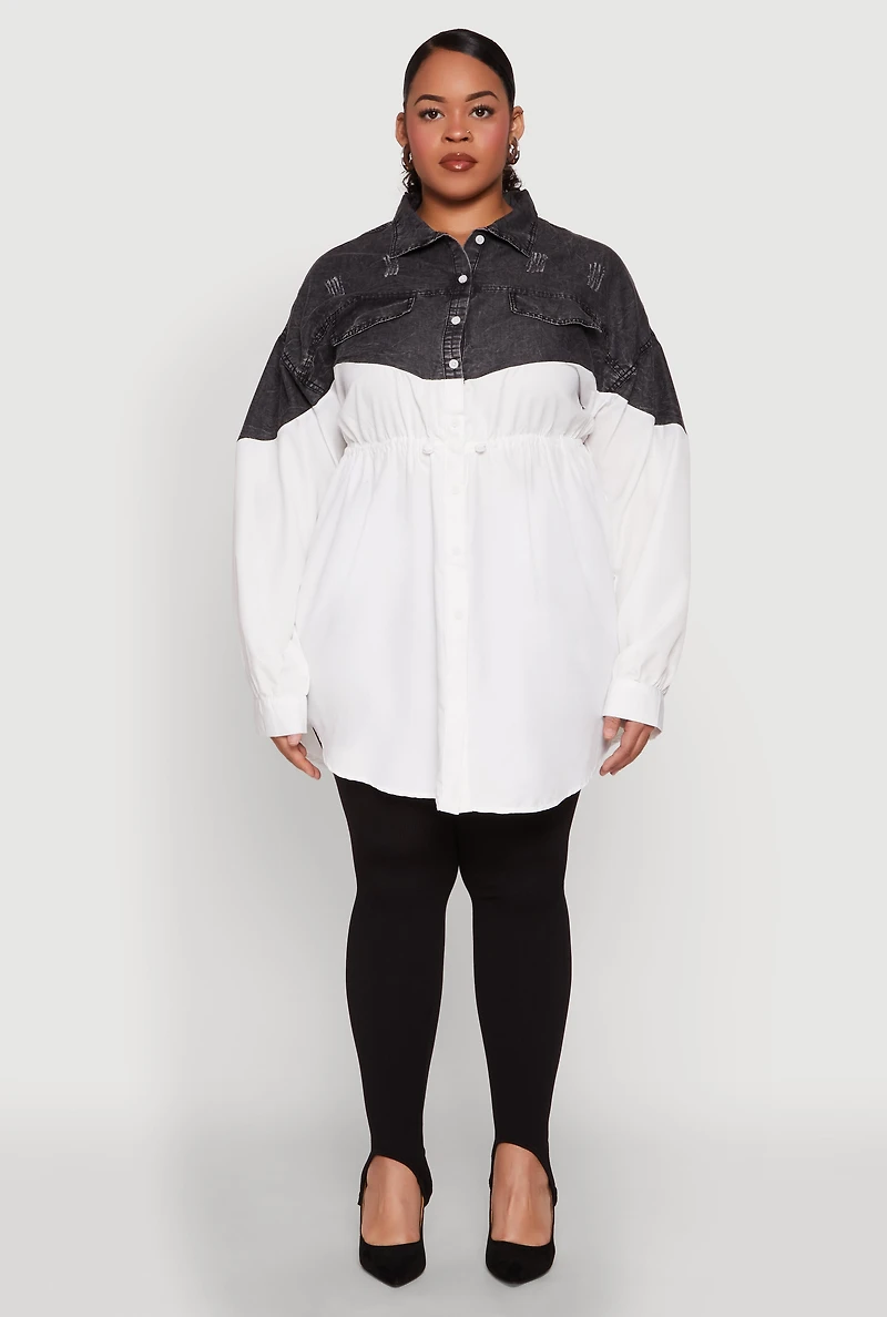 Plus Denim Detail Distressed Tunic Shirt in San Juan, PR