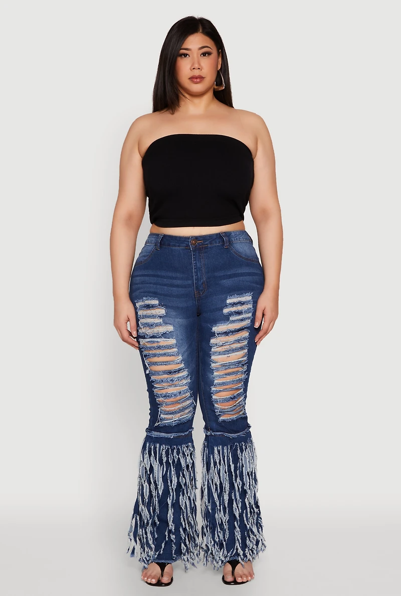 Plus Distressed Fringe Hem Flare Jeans