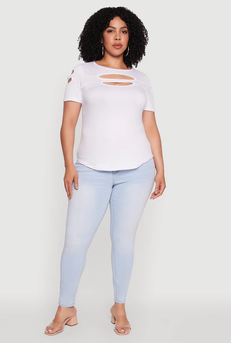 Plus Double Keyhole Crew Neck T-Shirt