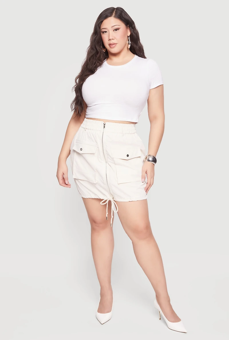Plus Drawstring Hem Zip Front Cargo Skirt