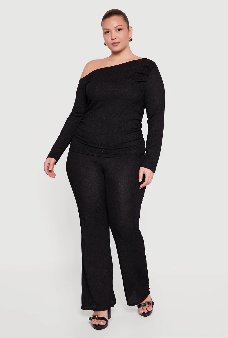 Plus High Waisted Boot Cut Textured Knit Pants in San Juan, PR