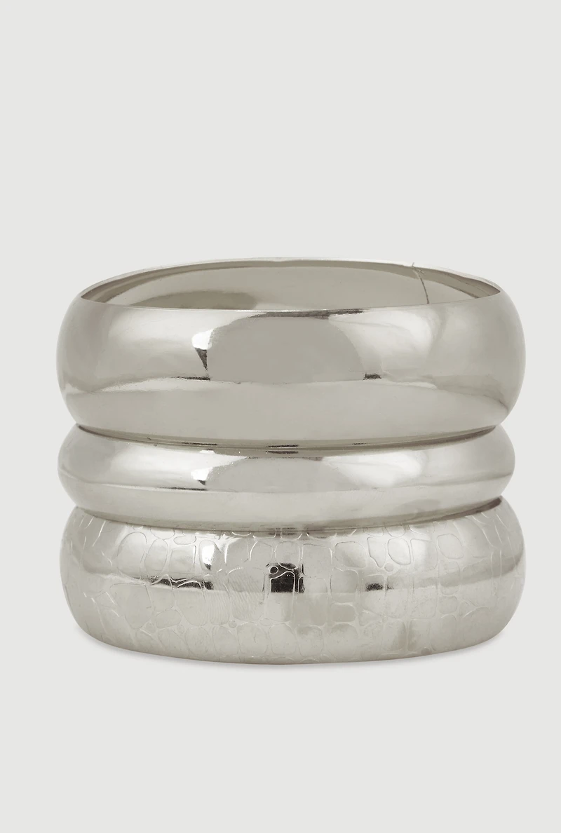 Plus Size Wide Metallic Bangles Set of 3Plus Size Wide Metallic Bangles Set of 3