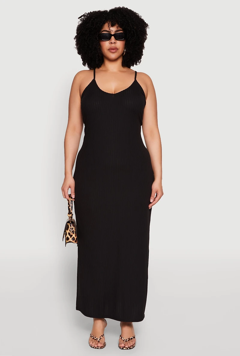 Step into effortless style with our Plus Size V Neck Side Slit Maxi Dress. Designed for comfort and confidence, this sleeveless dress features a flattering V-neck and a chic side slit that adds just the right touch of allure. Perfect for casual days or weekend outings, its classic fit and timeless silhouette make it a wardrobe staple. Made from soft ribbed knit fabric, it drapes beautifully and feels amazing against your skin. Whether you're heading to brunch or just lounging in style, this maxi dress has got you covered.
